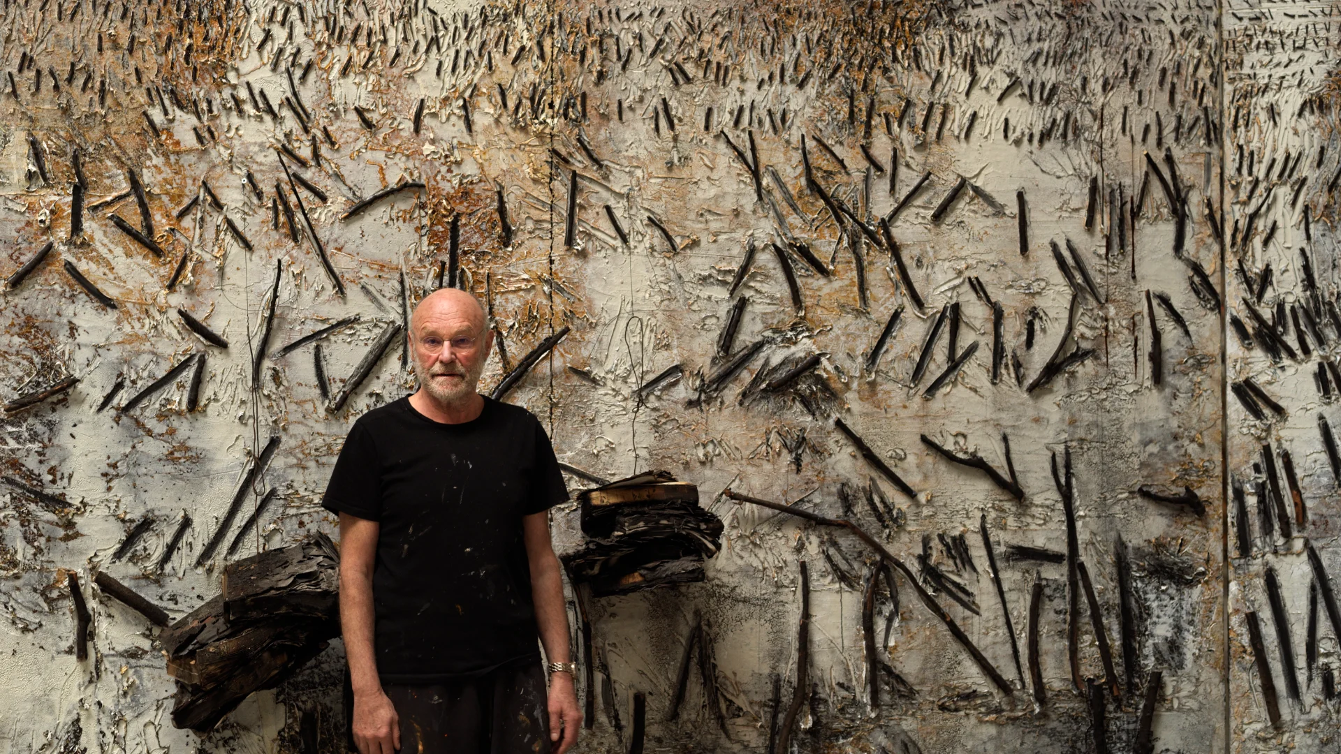 Anselm Kiefer junto a una de sus obras realizadas para la exposición en el Palacio Ducal de Venecia. Crédito Georges Poncet